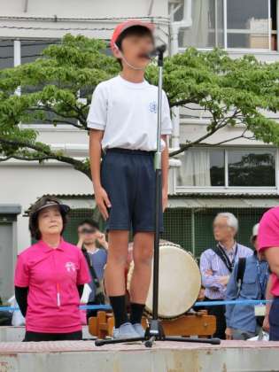 閉会の言葉(6年生)です。そして、大玉送りから閉会式の隊形に並ぶとき、優勝旗授与、そして校歌は、翠と溪の学び舎 世田谷区立尾山台中学校の吹奏楽部の先輩たちが演奏してくれました。すてきな演奏をどうもありがとう。来年も楽しみにしています。