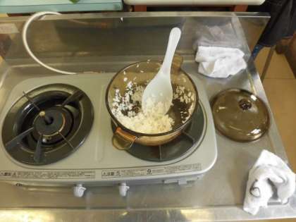 運動会明けの授業で5年生は、ごはん炊きの調理実習です。