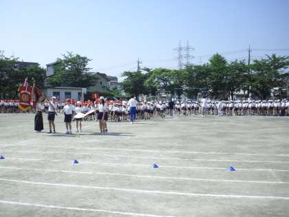 今日は、朝の時間を使って、運動会の入場の練習と開会式と玉堤音頭の練習をしました。運動会の本番と同じように行いました。当日も頑張ります。