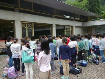 ビレジの方ににしっかりとあいさつをしました。校旗も上がりました。