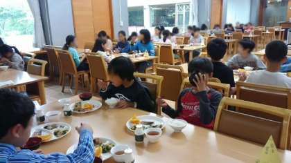 朝食は、食堂でいただきました。食事係が準備や片付けで活躍しました。