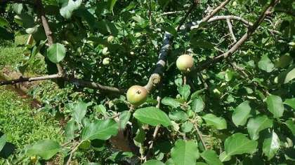 りんごは、まだ青いです。