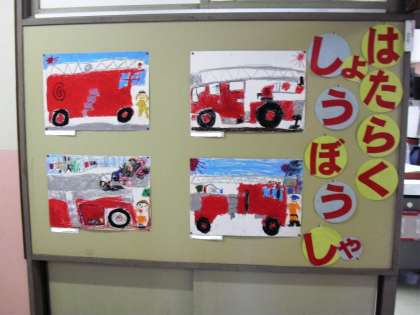 1・2年生の子どもたちが一生懸命に描いた「働く消防の絵」が出来上がり、校内に掲示しました。どれも力作で、大きな消防車などが描かれています。ご来校の際は、ご覧ください。
