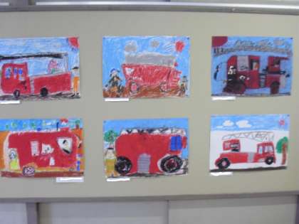 1・2年生が頑張った「働く消防の絵」