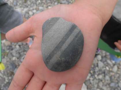 石について調べたグループでは、色や形、さわり心地などに注目して石を分類分けしました。不思議なしま模様の石を見つけた児童が、「どうやってできたんだろう」と疑問や知りたいことを深めることができました。