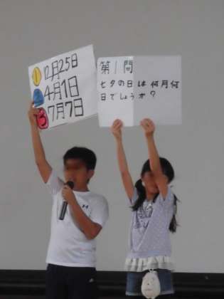 少し早かったのですが学校では、7月1日に集会委員が企画した「七夕集会」を行いました。七夕にまつわるクイズも楽しみました。
