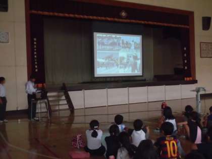 その後体育館で、生徒会から尾山台中学の学校生活について説明がありました。