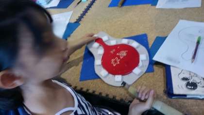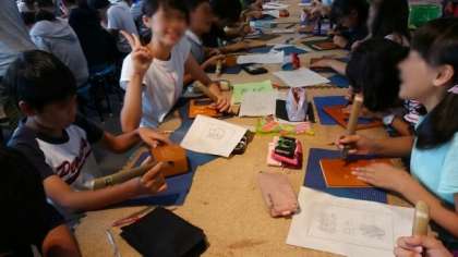 日光彫りに挑戦です。担当の方に教えていただきながらあらかじめ用意しておいた下絵を写して彫っていきます。
