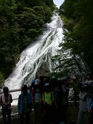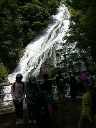 湯滝に到着しました。湯滝は高さ70m、長さ110mで迫力があります。ここで一休みしてから戦場ヶ原に向かいます。