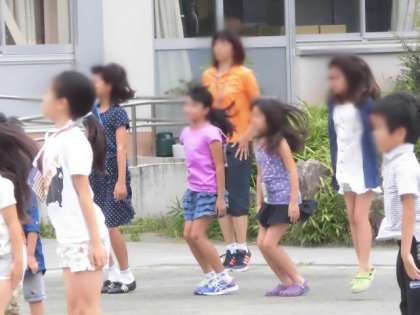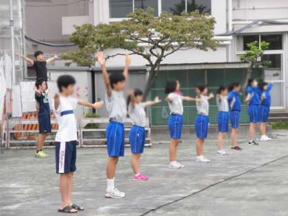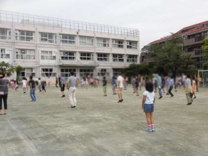 学校運営委員会主催のラジオ体操に、今朝も大勢の方々が参加してくださいました。