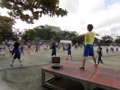 今年は、尾山台中学校の先輩たちがボランティアとして毎朝参加し、皆さんの前で体操をしました。頼もしい先輩たちです。玉堤の小学生も引き継いでいってくれたらと願っています。学校運営委員会の委員さんをはじめ、PTAの役員さん方にも受付等でお世話になりました。皆さん、ありがとうございました。