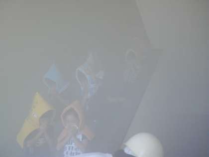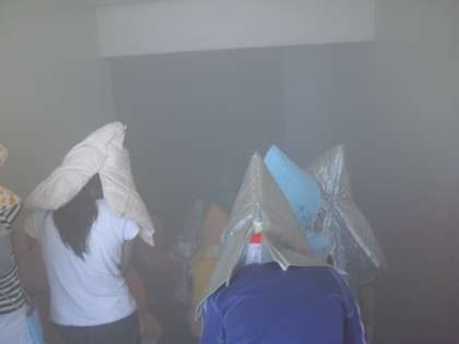 今日の避難訓練で、3・5年生は玉川消防署の方の協力で「煙体験」を行いました。給食室からの火災で、煙が廊下や階段に立ち込めその中を避難するという設定で中央階段で煙体験をしました。子どもたちは、充満した煙の中、ハンカチで口をおおい腰をかがめて避難する体験に「大変だ!前が見えないよ」など感想を話したいました。