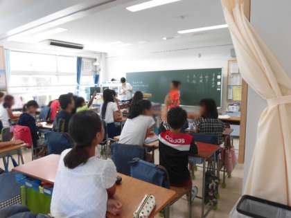 夏休みの思い出を各自発表しているクラスもありました。転入生を迎え、自己紹介もかねているようです。また、新しい係決めで盛り上がっているクラスもありました。久しぶりの友だちとの再会ということもあるのか、みんなの声も弾んでいるようです。