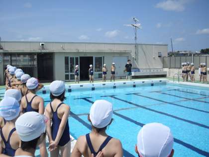 夏至の今日、梅雨の合間の晴天に恵まれ、4・5年生もプール開きを行いました。久しぶりのプールサイドに、子どもたちも気持は、「速く泳ぎたい、自分の力を伸ばしたい」などでした。今シーズン安全に行います。