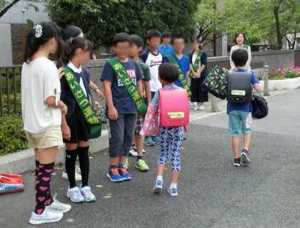 最初は、少々恥ずかしそうにしている6年生もいましたが、元気な声が出るようになり、気持ちの良いあいさつが交わされるようになっていきました。