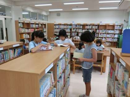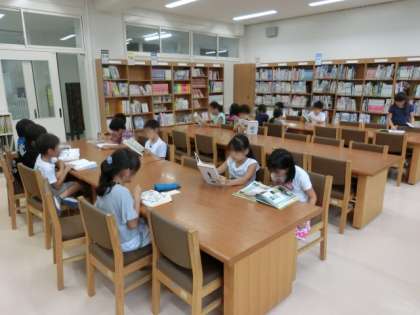 校庭で遊べる日の20分休みは、体力を高めるためにも校庭で元気に遊ぶ約束になっています。しかし、雨などで校庭で遊ぶことができない日は、図書館を使ってもよいことにしなっています。今日は、朝から雨の一日なので、図書館には多くのお友達が来ていました。新しくて使いやすくなった図書館で落ち着いて読書を楽しんでいました。