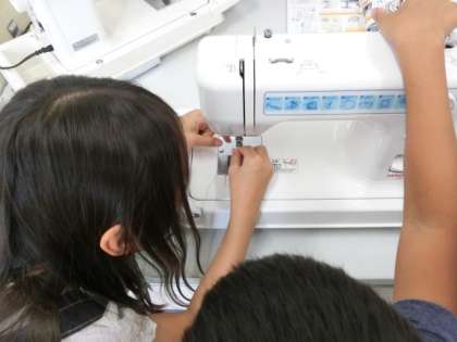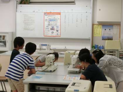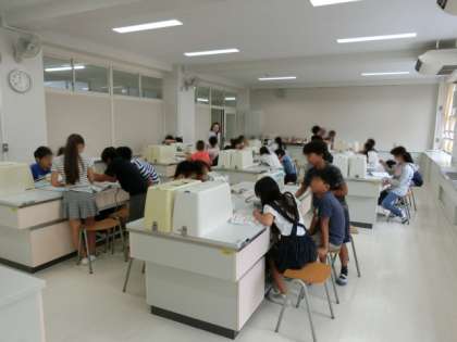 家庭科室も新しくなりました。全体的に明るくなりました。その中で5年生がミシンの使い方を学習していました。上糸と下糸をかけられるようみんな真剣に取り組んでいました。先生も丁寧に指導してくださいました。5年生は、ミシンを使ってエプロンを作る予定です。