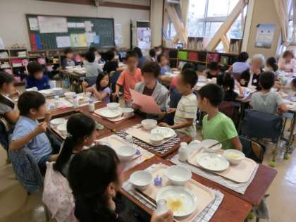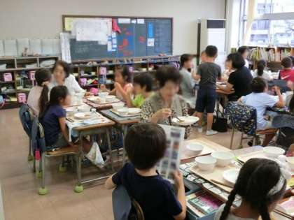 食育の一環として、みどり会の皆さんと区役所の健康推進課、健康づくり課の皆さん、そしてこの会の窓口となってくださった学校支援コーディネーターの三嶋さんと一緒に2年生のお友達が、楽しい時間を過ごしました。みどり会の皆さんにもとても喜んでいただきました。