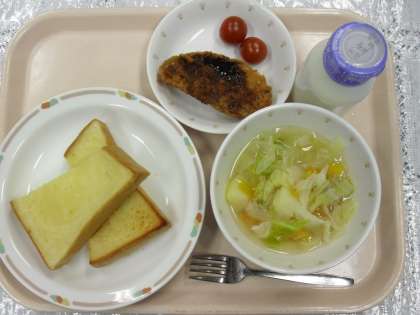 今日の給食は! 公開日 2010/06/23 更新日 2010/06/23 できごと 今日のメニューは「はちみつレモントースト、アジフライ、野菜スープ、ミニトマト、牛乳」でした。 いいね(0) 学校生活