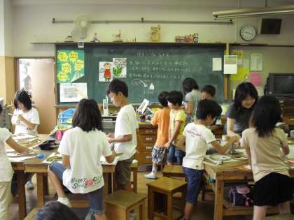 図画工作と英語活動を行いました。教育委員会から派遣された、ALTの方が主になり、担任と共に指導をおこないました。図画工作では、愉快な仲間を創るということで、いろいろ考えて作成していました。