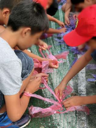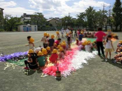 9月に行った制作の様子です。暑い日でしたがクラスごとに分担の場所を一生懸命仕上げていきました。