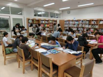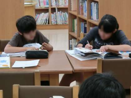 調べ学習を進めるためには、適切な資料を見つけられることも必要です。6年生が図書館でそのような学習をしていました。