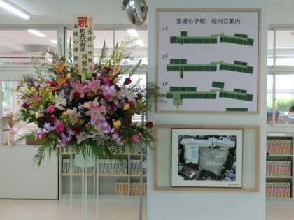 玉堤小学校同窓会の皆様から、すばらしいお花をいただきました。また、PTAからは記念品としてクリアファイルをいただきました。皆様の子どもたちや学校のことを思ってくださるお気持ちに感謝いたします。ありがとうございました。