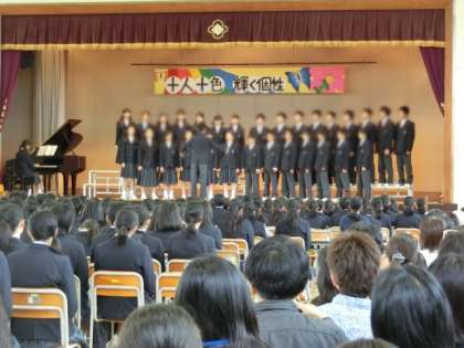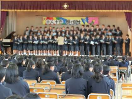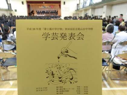 翠と溪の学び舎「尾山台中学校」の学芸発表会は、体育館での各学年の「合唱コンクール(午前)」、部活動や学習の「舞台発表(午後)」、教室や廊下での作品展示で行われています。