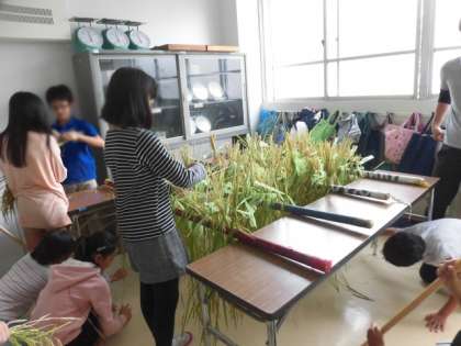 今後脱こくや精米などの作業をすすめていきます。どれだけのお米ができるか楽しみです。