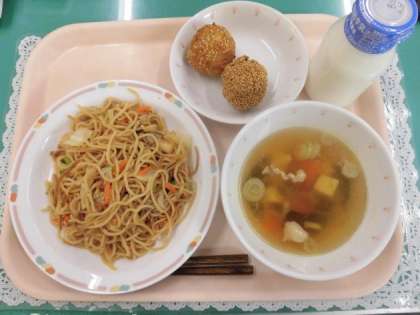 今日はさつまいもを使ったごま団子です。白玉粉をまぜて作ったのでもちもちとした団子が出来上がりました。ごまがたくさんついて食べごたえがありました。