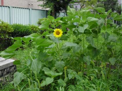 学級園のひまわりも咲きました。玉堤小の子だもたちを見守っています。