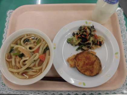 今日は、えほん給食第2回目です。今日の絵本は「からすのてんぷらやさん」に出てくるてんぷらです。保健給食委員の児童がとても上手にお昼の放送で絵本を読んでくれました。いかもさつまいものからすのキュウベエさんの教えが上手だったせいか、とてもよく食べていました。
