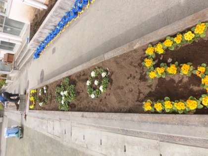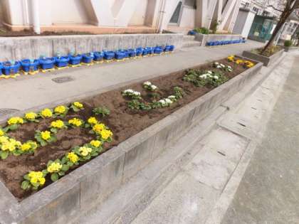 飼育栽培委員会の友達が、花壇に冬から春の花苗を植えてくれました。