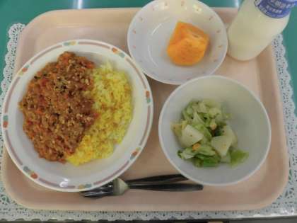 今日はご飯の食缶をあけた瞬間から子ども達から黄色いごはんだ〜〜との声があがっていました。少し用心しながら食べている児童もいましたが、食べたら普通だったといっていました。イエローライスはターメリックで黄色をつけました。ターメリックとはウコンという植物を粉にしたものです。
