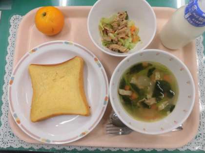 今日の給食はえほん給食第3回目でした。今回の絵本は「ルルとララのフレンチトースト」からです。なかよしの女の子ルルとララが様々なお菓子作りに挑んでいくシリーズの本です。色々なフレンチトースト味があり、どの味にするか迷いましたが、一番食べ慣れているプレーン味のフレンチトーストを出してみました。女の子に人気の本で、2、3年生あたりの児童はとてもよく知っていました