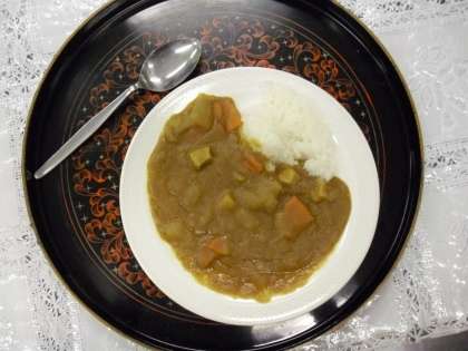5年生は家庭科で、カレーライスを、2・1年生はペアで学校探検をしました。5年生のカレーライスをいただきました。