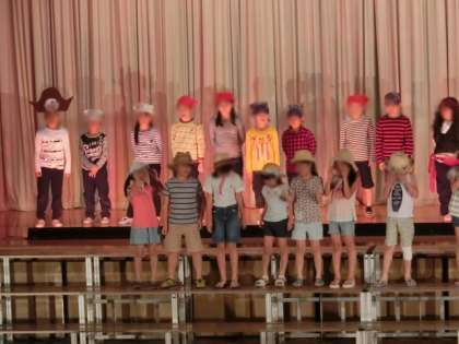 2年生は、会場にいるすべてのお客様に全員の声が届くようにしっかりと言葉を伝えられるように毎日練習しました。ちょっと、おかしな海賊が最後にはお菓子屋さんになるというかわいいお話。歌もところどころにあり、学年全員で力を合わせて歌い、劇を盛り上げました。初めての学芸会を終えて2年生も、達成感に大満足でした。(2年担任)