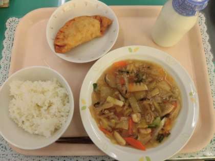 今日のジャンボ揚げ餃子は皮が少し多めにきたので全クラスにおかわりをプラスすることができ、おかわりジャンケンの声がたくさんのクラスから聞こえてきました。