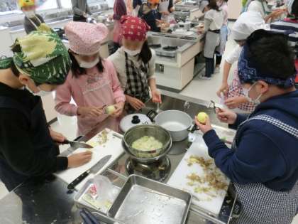 家庭科の調理実習で、「いももち」作りに挑戦しました。
