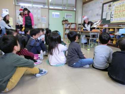 1年生の読み聞かせは、2学期最後でした。この時期ということもあり、お話は、クリスマスにちなんだものでした。