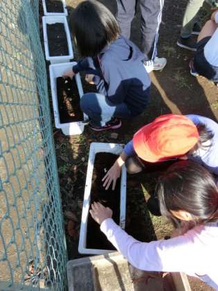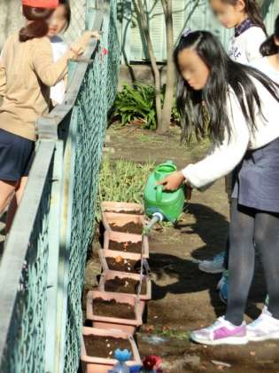保護者の方からチューリップの球根をたくさんいただきました。ありがとうございました。それを飼育・栽培委員会のお友達がプランターに植えました。
