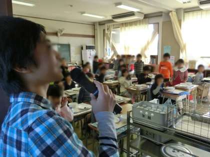 放送委員会のお昼の放送でイントロクイズをしました。放送委員が教室に行って、子どもたちに答えを聞くのですが、どこの教室に行くかは分かりません。