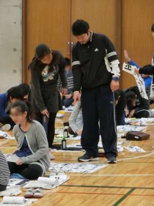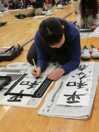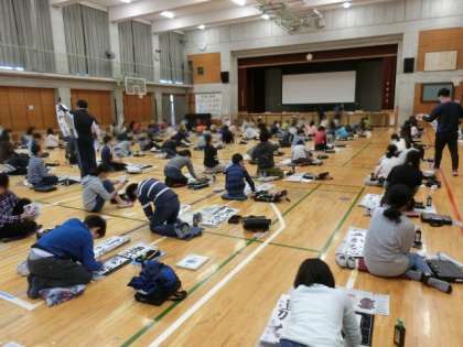 5年生は「豊かな心」、6年生は「平和な春」を書き上げました。