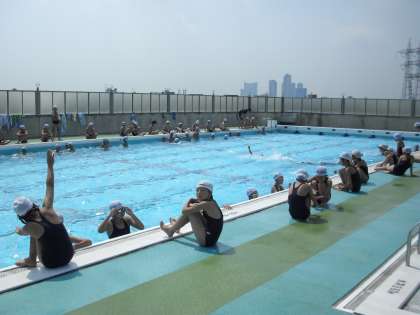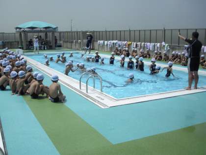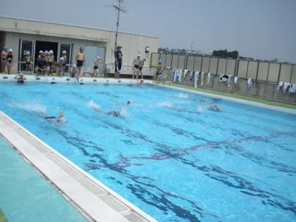 今日から夏休み!水泳指導に多くの子どもたちが参加しました。猛暑の今日、一杯泳いでいました。保護者のかたも参観されていました。