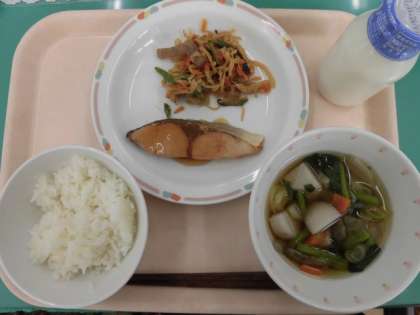 今日はぶりをつかった照り焼きでした。ぶりは大きくなるにつれて呼び名が変わる出世魚で、えんぎがよい魚といわれています。そのため、1年の始まりのお正月に食べる習慣もあります。今日の給食ではぶりになかなか味がしみこまなかったので、焼いたタレをつかってあんかけを作り、上からかけて仕上げました。