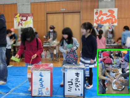 「からあげ」「ソースせんべい」「チョコバナナ」の食べ物コーナーもあります。