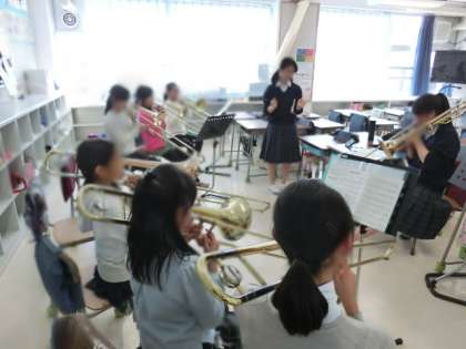 尾山台中学校の吹奏楽部の先輩が、玉堤の合奏クラブを教えに来てくれました。中学生の中には、毎回教えに来てくれる先輩や、元玉堤の合奏クラブのメンバーもいて、交流の輪が続いていることを実感できました。小学生にとってはとても貴重な経験にないりました。小学生は最後に心から「ありがとうございました。」とあいさつしていました。(合奏クラブ担当:春日 小林 安里)