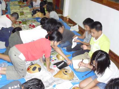 いろいろな下絵を描いて、色つけに入ります。子どもたちは発想豊かに工夫していました。
