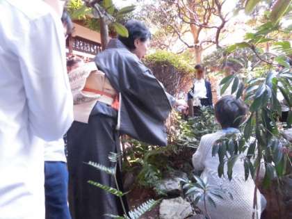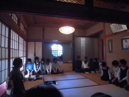 本校の学校運営委員、豊田美智子さんのお宅で、礼儀作法と茶の湯体験をさせていただきました。