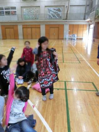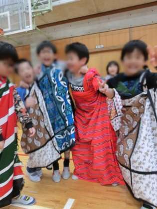 大人は、上下で2枚使いますが、今回子どもたちには、1枚で着てみました。